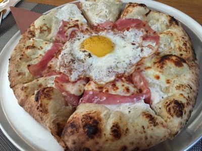 Before I stopped in, I took a look at the dinner menu on the website and decided I had to have the Valentina pizza. It’s described as “Pecorino Bianco, Ham & Egg & Black Pepper”. I’m a sucker for a runny egg on pizza. But when I was handed the lunch menu, the Valentina wasn’t on it. Thankfully, I had the good sense to ask, and Mike happily made it for me.