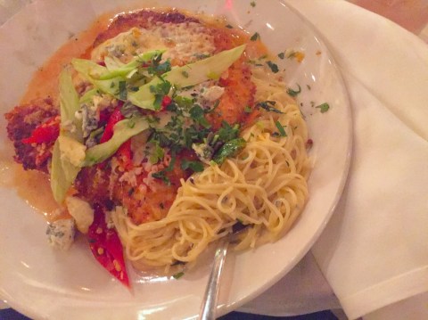 This dish is called “Buffalo Chicken Parmesean” and is obviously a twist on buffalo wings. It was delicious. Breaded chicken, mozzarella, buffalo sauce, hot peppers, celery, gorgonzola cream cappellini.
