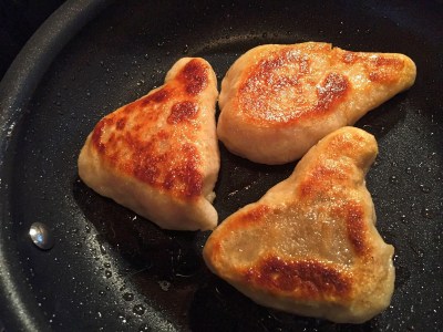 They’re generously filled, with a perfect balance of mashed potato and cheddar cheese. The well-seasoned potato mixture has a pleasant, but mild, black pepper kick. The thickness of the pasta is just right too, not too thick, not too thin, and they brown up in a buttered frying pan to a drool inducing crisp and golden crust.