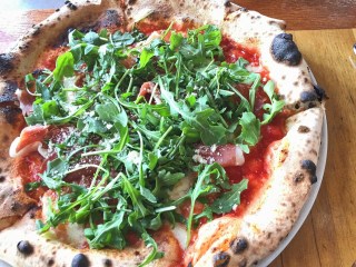 My wife opted for the “Volturno”. San Marzano, buffalo mozzarella, arugula, prosciutto. It was delicious. The tomato sauce is fresh and bright. There was just enough cheese, and the prosciutto adds a salty/sweet component, which balances out the bitter arugula.