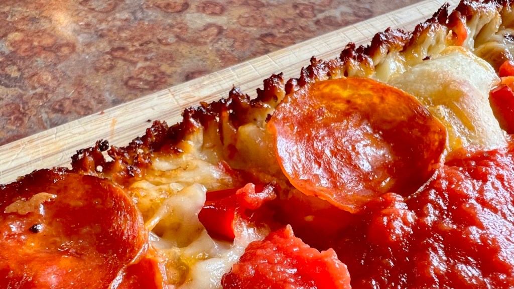 A Detroit-style pizza I made on a whim. 75% hydration, with a mix of 90% King Arthur 00 Pizza flour, and 10% semolina. Cubed Monterey Jack and Mozz blend. Topped with pepperoni and red chili.